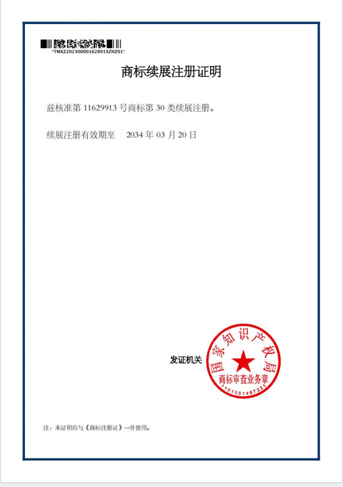 商標續(xù)展注冊證明